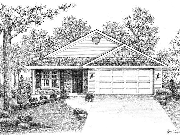 New Construction / Elkhorn Creek at the Colony offered for the first time! The Homestead features 3 bedrooms, 2 baths and an attached 2 car garage. Family room has vaulted ceiling. The open picture pass through window from family room to kitchen gives the home an open and airy feeling. House includes both a front covered entry and a back covered porch off the kitchen.
