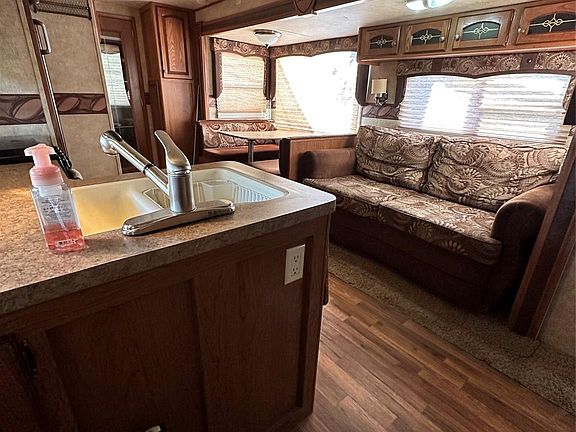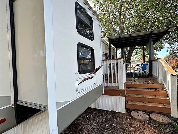 Sought after premium lot in popular Badin Shores Resort. Relax in the back yard with a perfect view of the pond that has a beautiful waterfall. Property is located close to the swimming pool, directly across from the putt putt course, RC car track and disc golf. Easy access to/from the front gate. Large level lot with ample parking & storage building also includes two grills, two outdoor tables and fire pit. Camper has a covered porch, sleeps 10, queen bed in the primary, double bunks in the back bedroom, refrigerator, stove, 3 tv's, board games, mini golf clubs. T-Mobile internet is available if you need to entertain the kids or work from home. Plenty of wildlife to enjoy. New roof installed 10/2023.