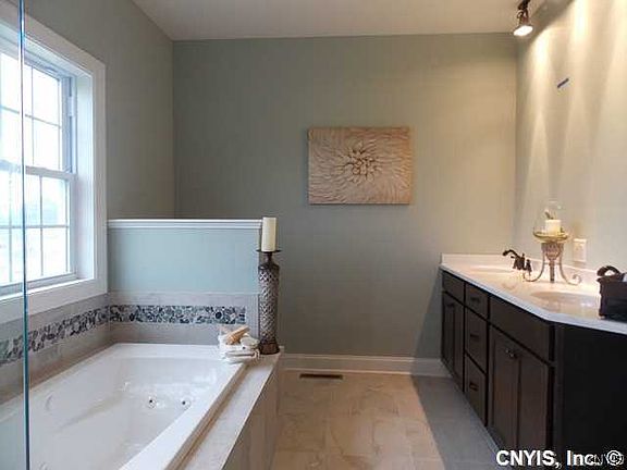 Welcome to this superior quality custom new built home. All upgraded finishes w/the same high end products behind the walls. Granite counter tops in baths and kitchen. fl-to-ceiling stone around gas fireplace w/built-ins on either side. Owners suite features walk-in closet w/private spa bathroom equipped with double bowl vanity, soaking tub, and floor to ceiling tiled shower with rain head. The basement has 13 courses; a great feature for a finished basement allows for 8 ft. ceiling height, w/another 1000 plus sq ft potential living space! Driveway, landscaping, and deck! Taxes to be assessed.