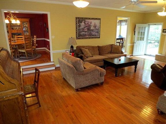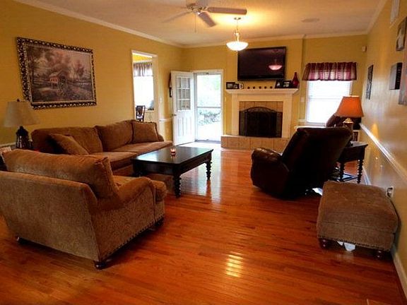 Get ready for summer in this beautiful home with pool! Beautiful hardwood floors in Foyer/Great Room and Dining Room..All Open and Inviting! Great Room with fireplace and Plasma TV above fireplace to remain with home! Kitchen with tile countertops/updated appliances. Pretty breakfast area that overlooks pool area..Three spacious bedrooms, each with private bath! Also half bath in hallway that has hardwood floors. Master Bedroom with Walk in Closet, updated bath with tile shower.Large Laundry Room that has room for computer or ironing board.HOme is prewired for sound. Wonderful backyard with inground pool with liner replaced recently. Covered Porch that is terrific for outdoor enjoyment. Wonderful storage building and playhouse on rear of lot. Home on acre lot, on quiet street in popular Canterbury Subdivision,in close proximity to Lee County Schools!