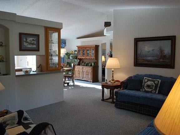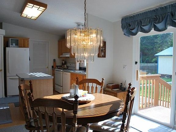 Great sunny home with 24' x 24' 2 car detached garage PLUS a big 36 X 28 RV garage/shop with a 12 foot high door. New roof installed in 2012, great cedar deck with non-skid surface, $34/month water, and a heat pump make this an efficient, low maintenance home. Solar Tubes and a sunny location make this a cheery place to live.
