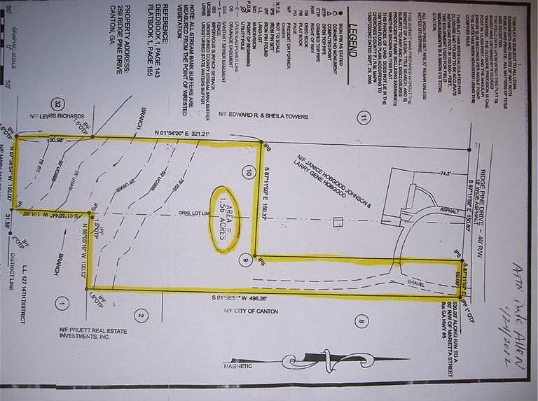 large secluded building lot located just off marietta Highway in South Canton. 1.56+/ ACRES located in unincorporated cherokee county but lot adjoins the city of Canton. There is an access driveway into the property. Property is wooded and conveniently located just behind the South Canton fire station on Ridge Pine Drive. Convenient access to I-575 Interchanges at exits 14 and 16. 09/20/17