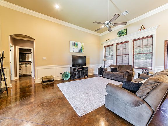 The eye-catching attention to detail found in this home is rarely seen in houses at this price point! The wainscoting in the common areas and the pretty lighting create a feel of comfortable elegance. The custom cabinetry painted in a soft white includes a spice cabinet and a pull-out for the garbage bin, as well as hidden drawers that make finding what you are searching for a cinch! There is ample counter space and a large peninsula perfect for bar height seating that allows interaction with those in kitchen, living, and dining. This truly open design makes the house seem so much larger than 1750 square feet! The natural light streams into the open design from banks of windows overlooking the dining and living areas in addition to a kitchen window that looks out into the large back All those windows are adorned with custom lined shades that remain with the house. The living area is flanked by the master suite and laundry room on one side of the house and 2 bedrooms with a hall bath on the other side of the house. The master bedroom has a beautiful ceiling treatment while the master bathroom has a spa tub, separate shower, water closet, double sinks, and a large walk-closet with a built-in. The laundry room includes cabinets and a hanging space for clothes. The large closets in the extra bedrooms, the linen closet, and the coat closet assure plenty of storage space inside. For extra storage and to make sure the outside remains neat is a custom-built storage building. The covered patio has a wood-burning fireplace that has prewiring to mount a television above it, making outdoor living more enjoyable. You will be impressed with the meticulously kept home!
