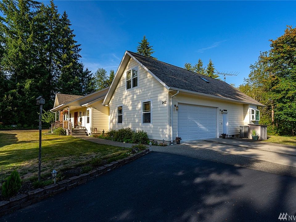 Desirable hill top property on River Heights road, just west of Centralia. This pristine 2.5 acre parcel features a designer home, shop, outdoor fireplace, fenced in garden with raised beds, and mature landscape around the property. The home is 2304 square feet with three bedrooms and two and a half bathrooms. It includes a bonus room with built in book shelves above the attached two car garage. The shop is a 60x24 with a 12x12 pop-out. Bring your buyers and take a look, it will not disappoint.