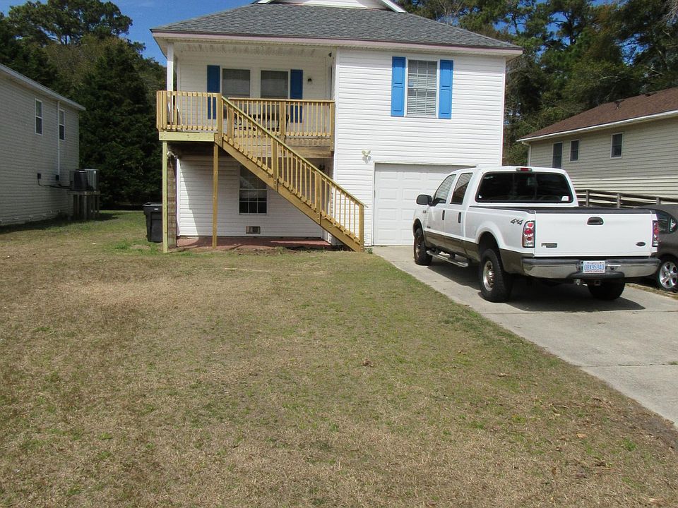 Freshly painted, 3 Bed / 2 Bath home in the Lovely Kill Devil Hills. In Colington Harbor two blocks from the inside of the gated community. Long Term Rental in the Outer Banks with a yard. 1st Month rent, last month rent and deposit is required. 1st Floor includes is over 1000 square feet which includes a Rec Room/Home Office 13ft x 18ft, one car garage, with huge amount of garage storage. 2nd floor Open living room 13.5ft x 18ft, dining area 11ft x 11ft, and kitchen with new subway tile, deck access, 3 bedrooms and 2 baths. Master bedroom has two closets. All electric appliances Refrigerator, dishwasher and glass-topped electric stove/oven. Dryer included. Ceiling fans in each bedroom and living room. Wood floors throughout home and tile in two full bathrooms. Unfurnished. The home is occupied please do not the disturb tenants. Home is the process of being painted. More pictures will be available soon. Renter is responsible for water, electric and internet. No smoking anything. All tenants over 18 must compete application and be on the lease. Credit report, Background check, Income & employment history, Proof-of-income. 1st Month rent, last month rent and deposit is required. Pets negotiable & require a fee.