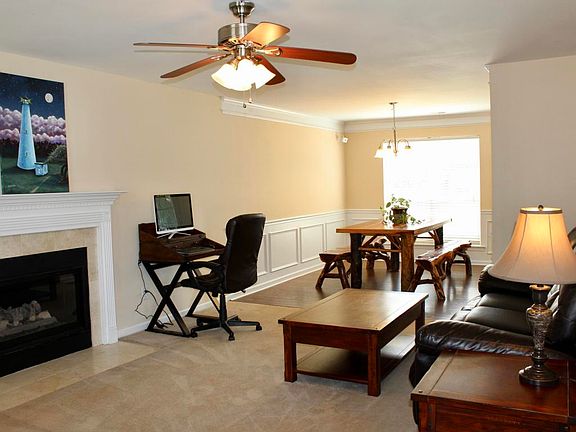 This beautiful 4 bedroom home is located on a quiet cul-de-sac. The foyer dining room and powder room have hardwood floors. The kitchen features solid surface counter tops and maple cabinets. The gas log fireplace in the great room is perfect for chilly evenings. The master suite with tray ceiling has a deluxe bath with garden tub shower dual sinks and ceramic tile flooring. The screened porch opens to a privacy fenced back yard with a storage building for your garden tools and a play set for the children! Make your appointment to see this Plum Creek gem today!