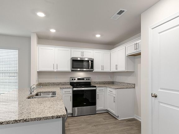 Welcome to 142 Rusling Leaf Dr at Matthews Landing in Fuquay-Varina, NC! The Pearson townhome features 3 bedrooms, 2.5 bathrooms, and a 1-car garage that offers plenty of room for comfortable living. As you enter the townhome, you will be greeted by an open and airy living area that flows seamlessly into a well-appointed kitchen with modern appliances and a breakfast bar for casual dining. The first floor also includes a convenient half bathroom for guests. Upstairs, you will find three bedrooms, each with its own closet space and plenty of natural light. The primary bedroom features an ensuite bathroom with a walk-in shower, a double vanity, and a separate walk-in closet. The other two bedrooms share a full bathroom with a shower/tub combination. The townhome also includes a one-car garage for added storage or parking. Overall, the Pearson II offers a comfortable and modern living space for everyone! Photos are representative.