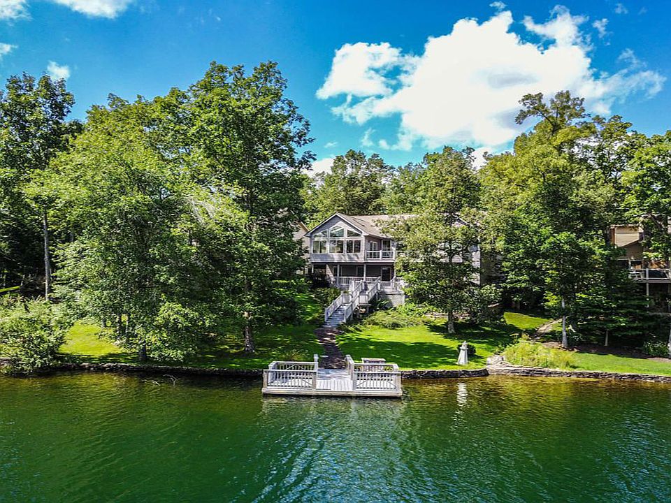 BEST VIEW on St. GEORGE Lake! The home was recently remodeled and features an open floor plan with a stone, natural gas fireplace, spacious kitchen with new stainless steel appliances (including a new gas range oven not pictured). A casual dining/morning room with gorgeous lake and mountain views. The bathroom floors are heated. Corian solid surface master shower is smooth and clean (No Grout!!). There is also a formal dining room, master suite, office/2nd bedroom w/bath, deck and laundry room on the main level. The lower level features a rec room, 2 additional bedrooms and bath, and a walkout to a covered deck. Stroll out to the private dock and enjoy lakefront living on one of Fairfield Glade's largest lakes!
