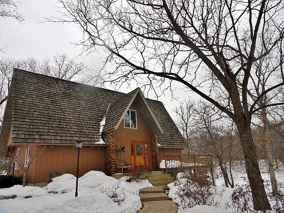 Welcome to Thorney Acres! Impeccable home in a beautiful wooded 5.23 acre setting. This straight-from-a-story-book-page cottage sits atop a hill overlooking a fully stocked pond with bass bluegill and catfish. The home is full of updates from new custom bookcases new hardwood floors new railings doors and trim and new kitchen cabinets and Corian countertops. Private road repaved just three years ago. The furnace and water heater are also new along with a fireplace insert in the main living room. The sun room offers incredible views of the property. Comes with a 24X24 detached 2 car garage; a Garden Shed that is 20X20 has a garage door electric and a covered porch to sit on; and a Pole Barn that is 24X40 has garage door openers has electric and is heated has a 1 ton overhead crane and an office. The walkout basement offers an additional 1 235 square feet of unfinished space. Schedule a tour today!