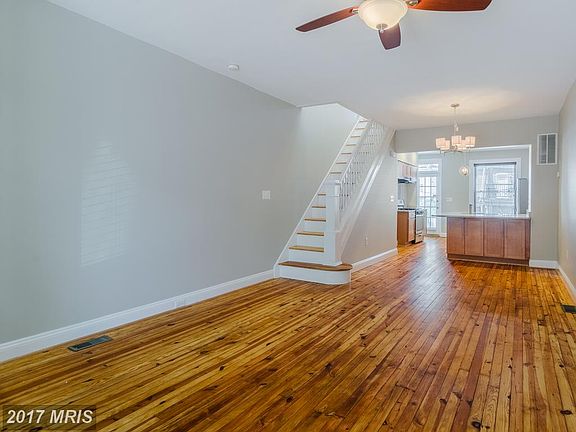 PICTURE PERFECT PATTERSON PARK ROWHOME WITH 3 FINISHED LEVELS & PARKING! Gleaming hw floors throughout, open floor plan, designer island kitchen w/ granite counters & ss appliances, upper level w/ 2 large bedrooms & full bath w/ sep claw foot tub & sep shower, finished basement w/ 3rd bedroom, full bath, laundry room, & storage area, and rear parking pad! Pack your bags and move right in!