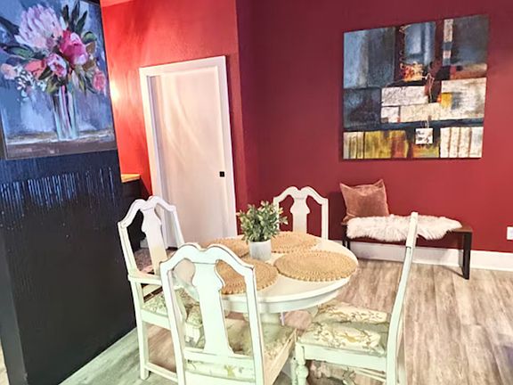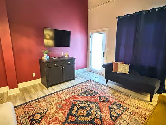 This quaint and charming newly remodeled apartment features a spacious and inviting room. Enjoy the comfort of a fully furnished space with a king-size bed, flat-screen TV, Wi-Fi, and free off-street parking. Take a stroll down the street to discover a variety of shops, restaurants, and entertainment options, all within walking distance. The tenant pays utilities $100 mo.