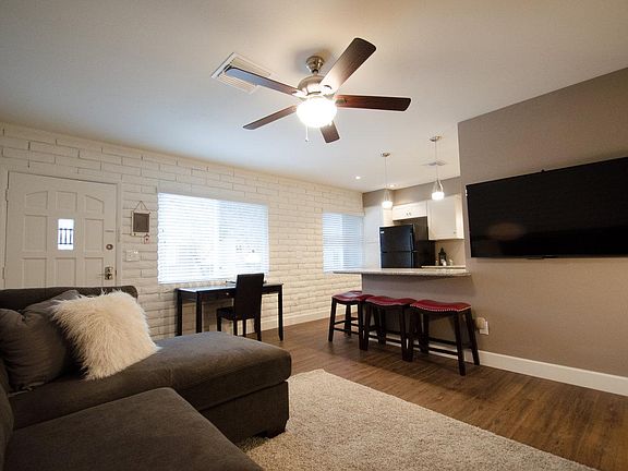 Freshly updated 2 bedroom/1 bathroom getaway located 1/2 mi from historic downtown Prescott Square. All utilities included. Newer furnishings, appliances & granite counter-tops. Full kitchen, king-sized bed in primary room, 2 twins in secondary room (not pictured). Free Wi-Fi, flat screen smart TV & cable. Keyless entry to this 1 level suite (no units above) with central heat/AC & assigned parking spaces. Courtyard with picnic table & gas grill. Rental rate includes monthly professional cleaning! Admin fee: $85, Application Fee: $50/adult occupant, Security Fee: $199 or Security Deposit: $2,842.50. Welcome home!