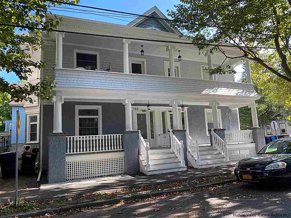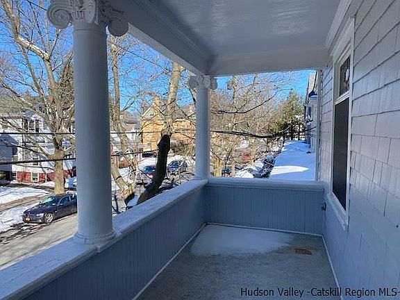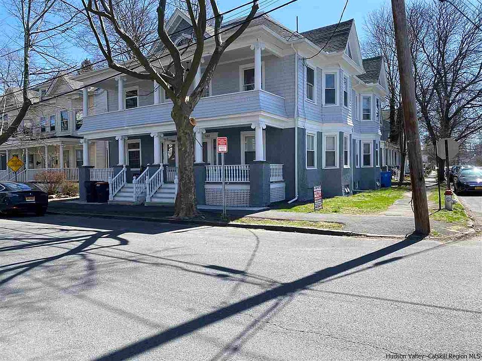 In the heart of Kingston's uptown residential district is a quiet street, lined with great Sycamores, that seems to transport you to another era in our history. At the corner of St James and Wall is a newly restored six unit investment property, maintaining the beauty and charm of years gone by! The exterior has been totally revitalized, with original details in columns preserved, the original front porches recreated on both levels, adding elegance, class, and prominence to this beautiful corner. The decks offer tenants outdoor space for relaxing, with the upper decks offering views of the neighborhood, and old and new architecture that surrounds. The two 3 bedroom apartments on the one side of the building are ideal for home office, or creative live/work, featuring the warm glow of hardwood floors, stained glass, and newly appointed kitchens and baths. the other side of the building offers 4 rentals, two 1 bedrooms and two studios, with refinished hardwood, new windows and appliances, and restored original stained glass. The roof has been newly recoated, and new gutters installed. Tenants pay gas and electric. Easy walk to the stockade district, offering a Saturday Farmers Market, great choices in dining, boutique shopping, and easy access to the Trailways Bus Station.