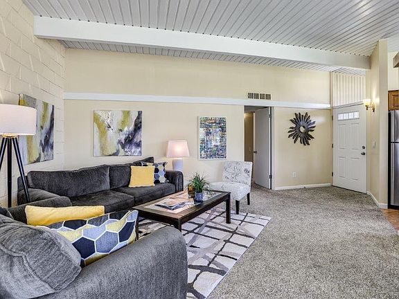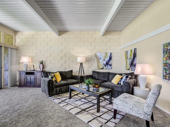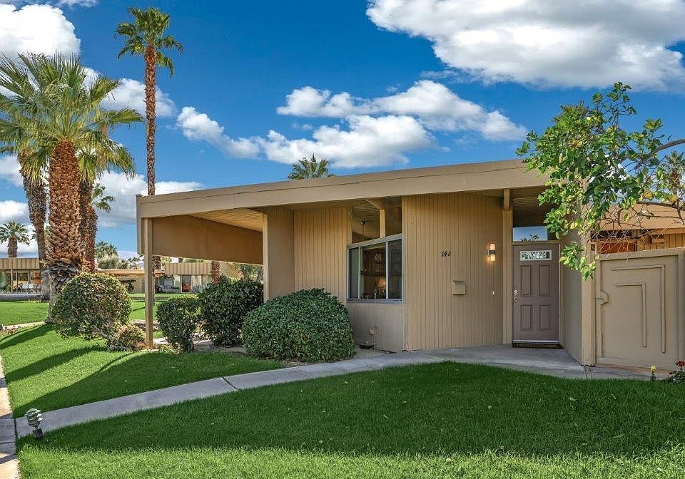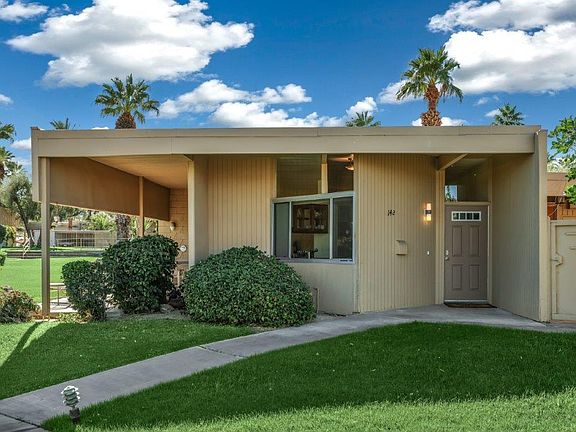 Own a piece of mid-century history! This 2 BR / 2 BA unit is one of the original Wm. Krisel condos built in 1959 with all of the original architectural features intact: exposed concrete block walls, clerestory windows, tongue and groove ceilings throughout. This unit features a mixture of tile throughout with carpeting in bedrooms and beautifully updated kitchen and bathrooms. Kitchen upgrades add extra cabinet space with granite countertops and stainless steel appliances. Come enjoy the good life with beautiful views of greenbelt and pool area with peek-a-boo mountain views from your poolside patio. Amazing location just mere footsteps away from shopping and dining on the El Paseo. Make this your new desert retreat!