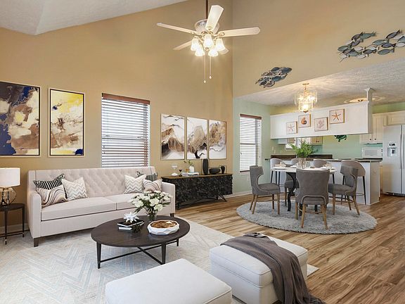 This home would make a great primary, 2nd or investment property. Spacious 3 bedroom, 2 1/2 bath home just 1 mile from the beach. Nicely laid out with vaulted ceilings in the family room and the main bedroom is on the 1st floor. This home has a screened in back porch and a shared fenced in yard which makes it unique. Home includes the Refrigerator and washer/ dryer that are all less than 2 years old. HOA fees include 2 community pools, playground, gated access, security, community yard maintenance & front yards & trash pickup. Palm Cove is a gated community that offers 2 large community pools, playground and more. The grocery store is less than a mile away and great restaurants are all around. You don't want to miss this one!
