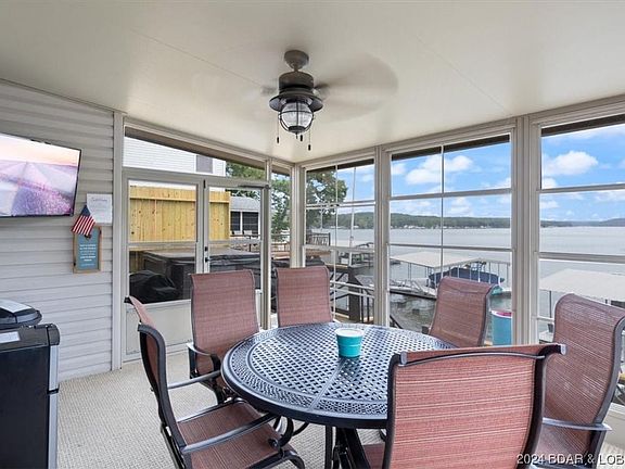 The ultimate lake house SELLING FURNISHED with GREAT RENTAL HISTORY! Three spacious bedroom, three full bathrooms, two living rooms, lots of deck space AND a three seasons room, PLUS cove location, main channel view, and a BIG swim platform on the dock! Enjoy the calm waters that are perfect for swimming, water sports, and excellent fishing. CoMo high speed internet is available making working from the lake house a possibility! Currently used as a nightly rental with numerous bookings this year showing that this is a fantastic investment property. The furniture, decor, hot tub, boat lift, and wave runner lift included in sale! Upgrades include new decking, interior paint, & carpet. Boat ramps + gas docks/ restaurants/ bars nearby, only 2 hours from KC area, + only 1/4 mile of gravel. Excellent property for full-time, part-time, and investment! 2024-04-12