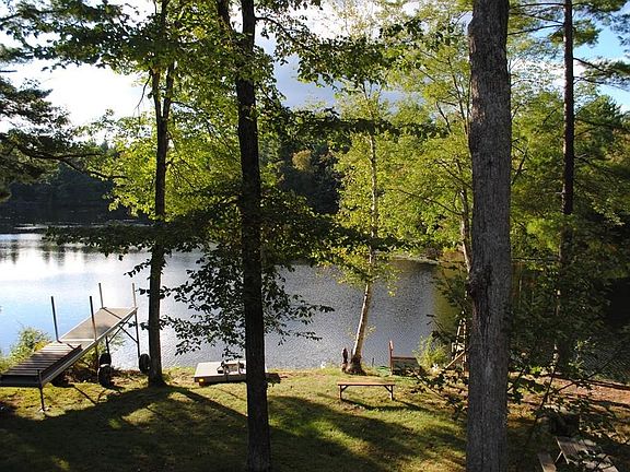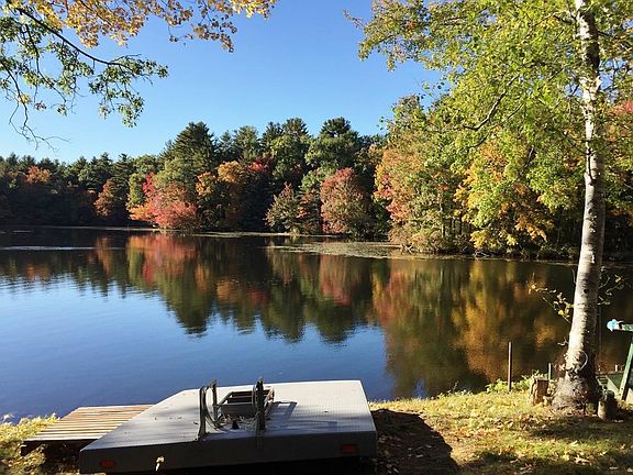 Beaver Lake Water Front + Scenic View add up to the retreat you always dreamed you'd find! 205 feet lake front, a private cove at the end of a cul-de-sac and wooded water frontage across the lake offer unique privacy and seclusion. Want to be social? Join in the active community events and beach and boating fun of the Beaver Lake Association! And look how easy it is to get here, less than 8 miles from Exit 8 of the Mass Pike. Wonderful deck with a screened area looks out to your own beach and dock and that awesome view. Enjoy the changing colors of the four seasons with a wood stove in living room and hearth in walk-out basement where you could install a wood or pellet stove and add a finished room. Open floor plan creates comfortable space for friends and family to gather inside with lots of room to spread out on deck and how nice to have two full baths, one with a tub/shower and another with a shower stall when everyone is there. Your very special place for very special memories!
