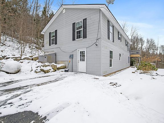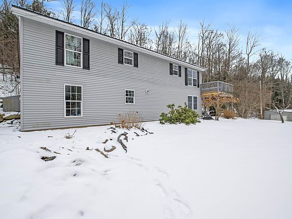 Privacy abounds at this 3 bedroom raised ranch at the end of a private dead end street. Not only does this sale include the lot with the house (8.92 acres) but it also includes an adjacent 5.05 acre buildable lot for a total of 13.97 acres in the woods with mountain views. Add to your tranquility with a lovely waterfall feature adjacent to the covered patio overlooking your landscaped back yard. Enjoy the views from your southern facing deck easily accessible from double sliding doors off the living room/dining room. Eat-in Kitchen has granite countertops, unique floor inlays, and stainless steel appliances. Multiple skylights add brightness to the rooms. Custom 3/4 bathroom with unique vanity. Front to back master bedroom with walk in closet. A second bedroom rounds out the top floor. The lower level has the 3rd bedroom, the utility closet, the laundry room, a 3/4 bathroom, and the rest is open space with double doors opening out onto the patio with waterfall feature. Solar panels reduce your energy usage and the house is wired to an automatic whole house generator for emergencies. A 20x30 steel detached garage provides plenty of storage or space for hobbies. Don't delay! See this home today!