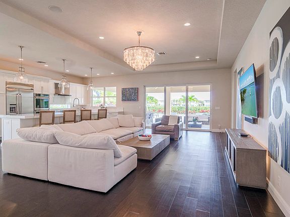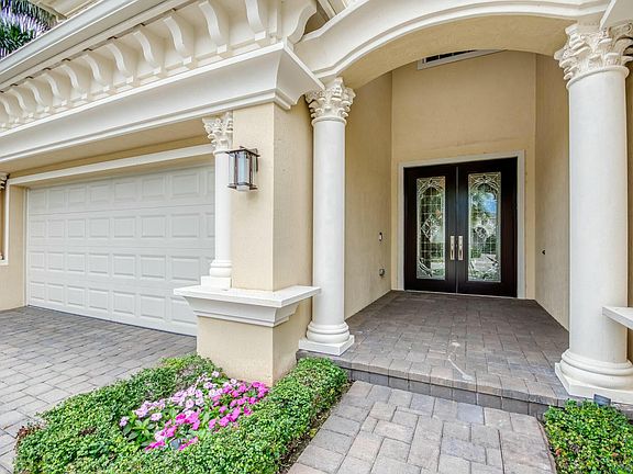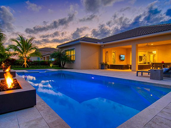 Luxuriously appointed, this coveted extended Santangelo model has been renovated with absolutely stunning finishes. BONUS: ASSOCIATE GOLF MEMBERSHIP is available to the buyer of this home or it can be downgraded to a social membership. Located in the resort-style gated community of Jupiter Country Club, this spacious floor plan offers 4 bedrooms, a flex room/office (or 5th bedroom), 3 1/2 baths, plus a loft. Step out from the open concept great room into the outdoor oasis. Inviting & spacious, this area boasts an extended covered lanai, motorized retractable screens, a large outdoor fan, built-in speakers, a panoramic lake view and a lovely pool & flush spa surrounded by travertine pavers and lush tropical landscaping. Sunsets are enchanting from this relaxing outdoor living area! The upgraded double impact glass front doors welcome you into the home where hardwood flooring flows throughout. Stylish light fixtures & ceiling fans were hand-selected for each area of the home. The gourmet kitchen is the heart of the home and features a mitered-edge expansive quartz center island, JennAir & SubZero appliances, a stainless farmhouse sink, double wall ovens, solid wood white soft-close cabinetry, a 6 burner gas cooktop, a luxurious quartz backsplash & sleek vent hood. Motorized light filtering shades are in the great room, dining room and flex room. The primary retreat is on the first floor along with one guest bedroom with en-suite bath, a powder room and a flex room which could also be a 5th bedroom. Upstairs is a large loft area with an additional flex space which could be used as another office; 2 bedrooms and a Jack & Jill bath. The primary retreat is oversized with a sitting area, 2 spacious walk-in closets and a spa-like bath with dual vanities, a walk-in shower & soaking tub. Jupiter Country Club is a luxury gated community conveniently located within close proximity of I-95 and the FL Turnpike, beaches, shopping, restaurants, parks & nature preserves. Club amenities & events offer a plethora of social opportunities and include a Greg Norman Signature golf course, 2 resort-style pools, the Sway restaurant & bar, a state-of-the-art fitness center + yoga/mat pilates/barre group fitness classes, massage/facial treatment services, tennis, bocce ball, pickle ball & basketball. Members enjoy reciprocal privileges to Invited Clubs worldwide. Live your best life here!