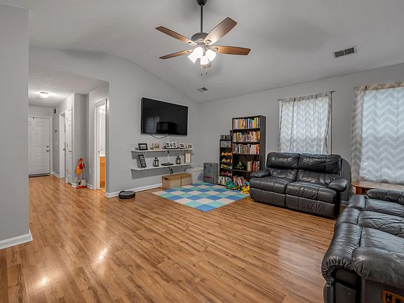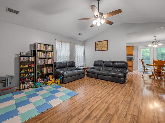 Charming ranch with open floor plan, vaulted ceilings, and laminate flooring throughout. No carpet anywhere and enjoy no steps! Spacious primary bedroom with ensuite and walk in closet. Separate utility room right off the garage. Fenced in back yard and last but not least a newer HVAC system. Conveniently located right off the bypass behind Lowe's and close to grocery, restaurants, and the interstate!