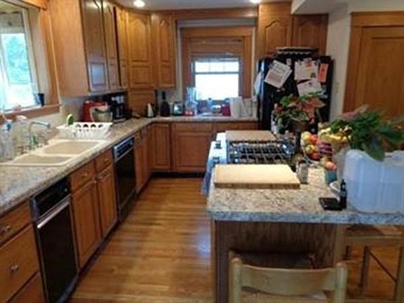 A beautiful, sunny center entrance Colonial that has been rehabilitated. Gleaming hardwood floors all over. Natural woodwork throughout, oak cabinets. Air conditioned and replacement windows with 2" blinds. Living Room with working fireplace, Dining Room with chandelier, office, huge eat-in Kitchen that opens to wrap around deck. 2nd floor has 3 bedrooms - all with walk-in closets. Master en-suite has whirlpool tub and shower stall. Both upstairs Bathrooms have vaulted ceilings with roof windows. Finished Basement has huge recreational/bonus room with full Bathroom, Utility/Laundry room with Maytag washer and dryer, new Weil MacLean 90% efficiency gas furnace and additional Storage Room. On Minuteman Trail for recreation, walking, biking, cross-country skiing. Verizon high speed internet ready. Walk to shops, restaurants, banks, post office, pharmacy, schools and places of worship and the T. Near all highways. Short drive to Logan Airport and Downtown.