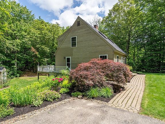 Picture perfect cape beautifully set back from the road, just waiting for its' new owners. The first thing that stands out is the gorgeous landscaping. Meticulously cared for, with blooming gardens leading you along the stunning walkway. Inside it is utterly charming. Warm wood floors and artful beams welcome you into the large eat in kitchen! So much room for entertaining- the parties will be endless. Dining room off the kitchen and large living room flow perfectly together. Wood stove for cozy evenings, and custom builtins everywhere. Custom kitchen built-ins, dining room built-in, and custom shelving in the living room. Perhaps the best spot is the screened in porch off the kitchen, that leads either to a huge wrap-around deck or the HOT TUB privately located in the back corner of the home. Upstairs, large primary suite with double closets. 2 additional bedrooms and your full bath. The basement is the family room- perfect for game nights or guests! Oversized shed for storage. Such a dream property, located in a desirable Strafford neighborhood. Enjoy the town beach on Bow Lake, and Coe Brown Academy. Welcome home! Listing agent is related to sellers.
