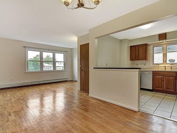 Showings will be Sunday April 11th between 12-2 pm. Bright and airy 3 bedroom apartment with inviting split level layout. This quiet top floor unit is only 2 flights up! Updated kitchen includes stainless steel appliances and opens to dining area and spacious living area. Beautiful crisp white bathroom, in-unit laundry room with recently installed washer and dryer, ample closet space and hardwood floors throughout complete the home. Bus to NYC and plenty of shopping and dining nearby. Available for June 1st! Please note there is no parking with this unit. The parking is for the downstairs unit. Credit check and 1 month's broker fee apply. Pets may be considered with landlord approval.