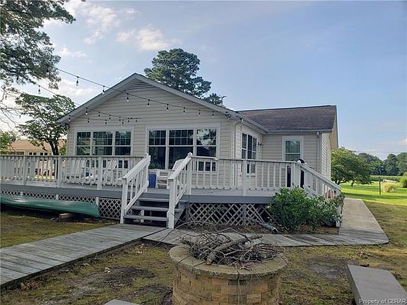 Well-loved and maintained home fronting on Mill Creek with deeded access to a beautiful sand beach and boat ramp. Private dock with Trex decking and floating boat dock. Natural waterfront beach for launching kayak or Hobie Cat. Waterside open deck with Trex wraps around the side of the home with an attached screened porch. The main house has 2 bedrooms and 2 full baths, kitchen, family room, and river room with lovely water views. Beautiful Heart of Pine floors in creekroom, hall, & BR's. Exterior stairs lead to the great apartment offering your guests complete privacy. Also, a teenager's dream home. One Bedroom, full bath, living area, and Kitchen. Apartment furnishings convey. Steps to the apartment were upgraded to Trex decking in 2021. Massive garage big enough for all your water toys - store 17-20 foot boat Septic upgraded 2020. New top-of-the-line, efficient Carrier Infinity HVAC with Propane Back Up 2021. Dog Watch Invisible fence recently installed. Custom Corian window sills in Sun Room and fiberglass windows throughout the home.. Easy Walk to Regent Point Marina. Short kayak, canoe, or boat ride to Merroir Waterfront Restaurant.. Convenient to Gloucester & Kilmarnock.