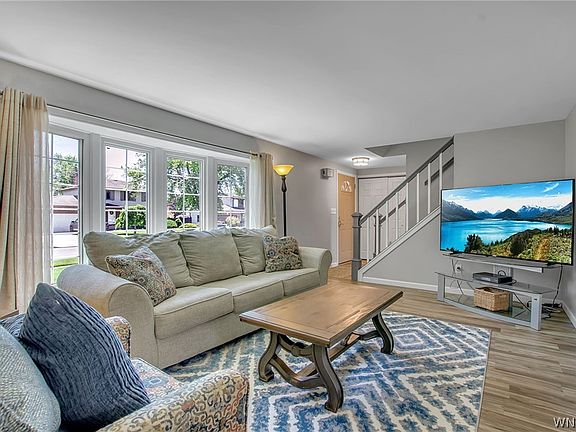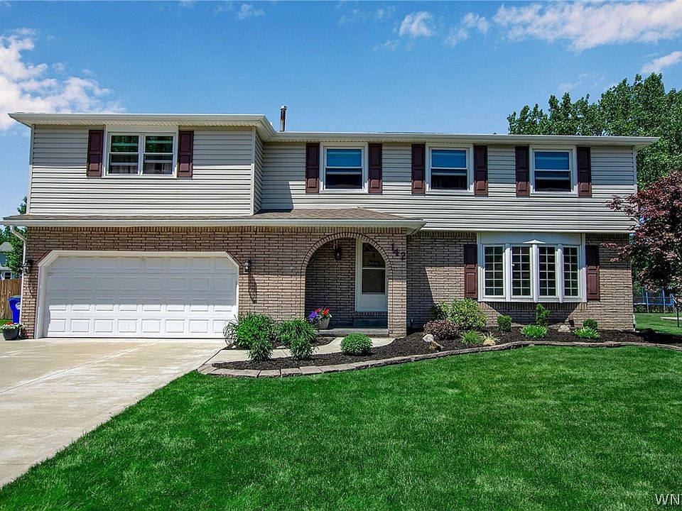 Spectacular truly move-in ready 4 bed, 2.5 bath Colonial in the highly rated Orchard Park school district. The home has been tastefully updated throughout! Stunning, current neutral paint colors & lighting fixtures throughout. The spacious living room opens into the stunning kitchen w/new Quartz countertops, subway tile backsplash, SS appliances, isle w/brkfst bar, lux vinyl flr, new lighting fixtures, a lrg eating area, & pantry. The family room off the kitchen features a fireplace & lux vinyl floors & leads to the beautiful fully fenced yard w/lush gardens, a shed & a new stamped concrete patio. The second floor features 4 nice-sized beds, 2 full baths & 2nd flr laundry/bonus room with endless possibilities! The lrg ensuite w/full bath, lrg walk-in closet & a nice office that's tucked away to work quietly! Partially finished lower level w/luxury vinyl & plenty of storage. Updates: Fence 2022, Shed 2020, stamped concrete patio 2023, windows 2016, vinyl siding 2018, AC-June 2024, furn & tankless HWT 2019, Kit updates 2021, concrete driveway & walkway, 2017, water backup sump pump 2017. bedroom carpeting 2022 & new gutters. It's a beauty & in a super location!Offers due Wed 6/19@2pm