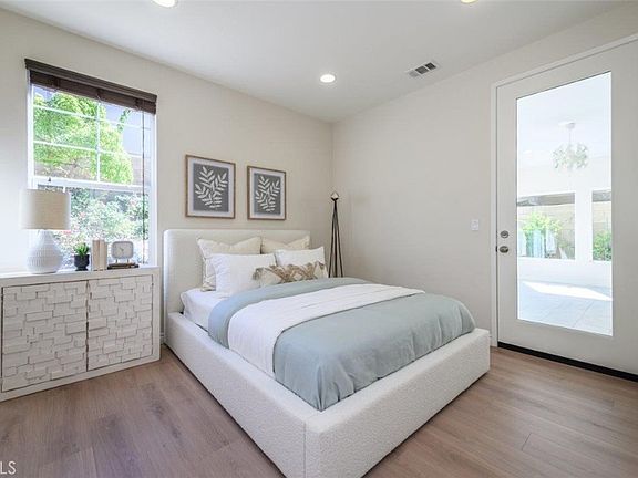 Gorgerous DETACHED home in Pavillion Park of the Great Park community. 5 bedrooms plus an enclosed patio, 3 baths. New wood flooring and upgraded tile floor throughout. Downstairs has two bedrooms and a full bath. another three bedrooms upstairs. The spacious great room adjacent to the enclosed patio and kitchen has an abundance of windows. Gourmet kitchen with center island, granite countertop, stainless steel appliances (including refrigerator), and nook area. Tranquil master suite with soaking tub, separate shower, and large walk-in closet. A sizable balcony is perfect for reading and leisure time on a beautiful day. Convenient upstairs laundry room with washer, dryer, and shelves. Professional landscapes with flower beds and plants. 2-car direct access garage. Enjoy Great Park all resort-style amenities include swimming pools, tot lots, parks, and sports courts. Zoned for the prestigious Irvine Unified School District.