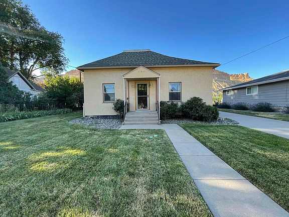 This charming home is located in the heart of Palisade, Colorado, just steps from downtown and all the shops, restaurants, farmer's markets, breweries, and wineries the town has to offer. The property is located on a quiet, historic street and backs to an orchard with fruit trees, providing stunning views of the Bookcliffs. The home retains its original charm and has updated windows and furnace. The property is fully landscaped and has Palisade irrigation water. There is a covered patio that is perfect for entertaining guests. The location is perfect for a primary residence, investment, or secondary home. It is close to everything you need but still feels like a small-town oasis. If you are looking for a charming home in a great location, this is the perfect place for you!