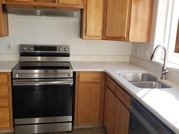 Duplex; Remodeled..upscaled..1 large bdrm, 1 average bdrm, carpeted; 1 bath with storage; laminate flooring, LR, Hall, Laundry; 1'x2' tile large kitchen, bathroom, entry; custom blinds (bdrms black out); quartz counters kitchen, bath; NEW appliances, stainless dishwasher (Bosch), top of line range, refer (french door), hood fan; ceiling fan, economical to heat & cool (heatpump/AC), Trex front deck ,back cement patio, small garden area, totally painted inside and outside; owner pays outside water, UG sprinkler on timer, small yard, owner cares for sprinklers and spring, fall maintenance; parking for 2 vehicles & RVs. Very quiet; 1,500.00 month rent, first & last; $500.00 damage/cleaning refundable deposit...all due before moving in. We do background check,..applicant pays for. NO PETS, NO SMOKING. We have references, do you? TAKING APPLICATIONS