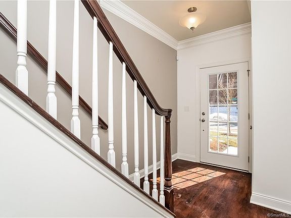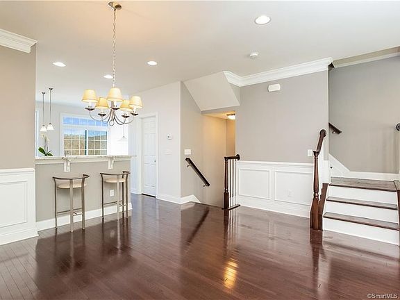 Beautiful 3 bedroom 2.5 bath Townhome with lots of upgrades. This unit has over $40,000 in upgrades including: Dark Hard Wood Floors on the Main Leveland stairs, White kitchen cabinets, Upgraded Refrigerator, additional lighting, Security System, upgraded granite in the kitchen and baths. The master bathroom has a glass shower door and built in seat, a heat lamp and jetted tub. Owners have added Shadow box wall molding in the living room and dining room for an added level of interest and uniqueness. Even an Electric Car Recharging Plug has been added in the garage. A Private deck backs to woods with unobstructed views of the hills beyond. The upstairs Master Bedroom has a walk in closet, Vaulted ceilings, and the ceilings are wired for lighting or a fan. Two additional bedrooms and a shared bath as well as laundry are conveniently located on this level. This home looks like a new unit. The 2 car garage provides a generous amount of storage. Buying this home is buying into a lifestyle that offers 3 pools, a gym, bocce court, theater, sauna, aerobics room, indoor lap pool, tennis courts, basketball courts, walking trails and close proximity to great restaurants and shopping. There is an additional pool exclusively for the use of homeowners in the Hills section. Common charges includes all the amenities, water and sewer, property management and trash pick up. Near Trader Joes and Mill Plain Road. First exit in CT. Easy commute location. And nothing behind you but the view.