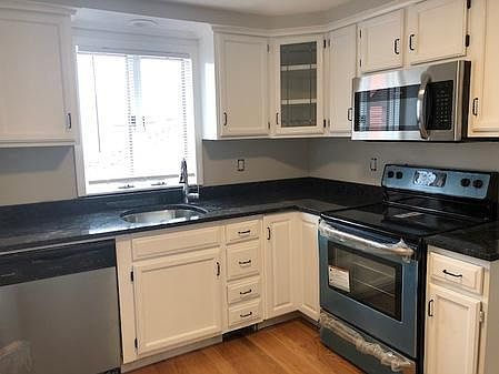 Brand new 4 Bedroom 2 Bath apartment features eat-in-kitchen with granite countertop, all SS-appliances and built in microwave. Huge living/dining room with bay window, 2 bedrooms: master bedroom with his/her closet and second bedroom has a loft, full bathroom/laundry room on second floor. Top floor has another 2 good sized bedrooms with full bath. Brand new hardwood floors throughout, new windows, 2 off street parking.One small pet for additional $50/month. Available for April 1st. Ad ID#: crg-183102592