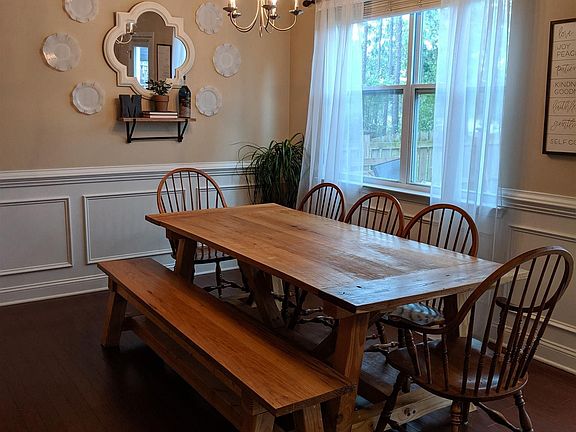 Looking for a beautiful, move-in ready home located in South Brook? You will love this open-concept home with custom molding and wainscoting throughout the main floor. Hardwood floors are in the entry way and the dining area. The kitchen has granite counter tops, back splash, black appliances, and recessed lighting. New carpet was just installed in the Great Room. The Master Bedroom has 9ft+ cathedral ceilings which makes it feel even bigger than it is. The walk-in closet is huge and will provide adequate storage. The Master Bathroom has two sinks, granite counter tops, a separate shower and garden tub. Two nice sized bedrooms share a full bathroom. There is a landing at the top of the steps which can be used as an office area or extra play area.Laundry room is upstairs as well. The owners cleared the back yard of trees when they purchased it. It has just enough trees to make you feel like you are in the woods, yet you won't be mowing all day. A fire pit will remain for those nights that Smores sounds like the best choice for dessert. There is a concrete slab which allows room for a barbecue and patio furniture. The house is located on a cul-de-sac so there is additional parking for your guests. The 1 car garage has extra room on both sides for storage. This community includes a pool, playground and volley ball all within walking distance. This community is easily accessible as it is located right off of the Longs Pond Exit of 1-20 and is zoned for Lexington 1 Schools.