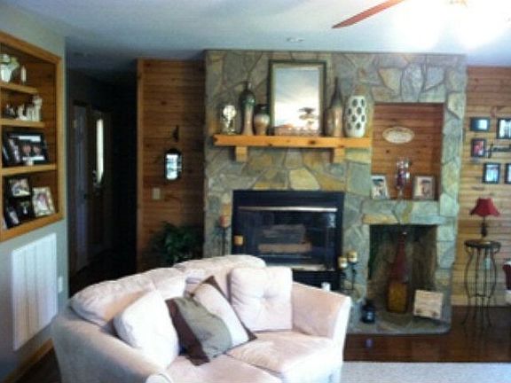 Almost new Site built house nestled in trees, in very desirable location with lake access and close to golf, shopping and Blue Ridge Parkway. Has full finished basement, Hardwood floors, beautiful stone fireplace, large covered deck, central heat and air, ceramic tile shower with dual shower heads, spacious recreation room downstairs could be great guest quarters or in-law suite.