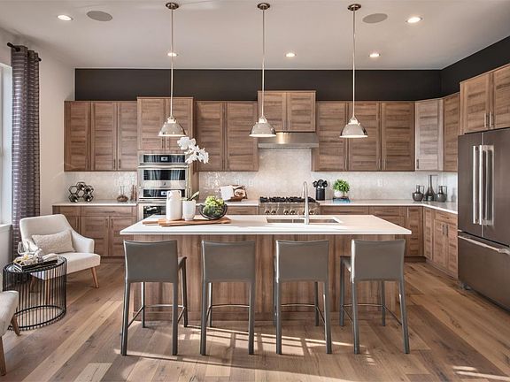 Luxe modern style. The Lauriston's inviting porch and welcoming extended foyer reveal a bright open concept flex room and expansive great room, with desirable access to the rear yard. The well-designed kitchen is equipped with a large center island with breakfast bar, plenty of counter and cabinet space, and sizable pantry. The secluded primary bedroom suite is highlighted by a sizable walk-in closet and spa-like primary bath with dual-sink vanity, luxe shower with seat, and private water closet. The secondary bedroom features an ample closet and shared full hall bath access. Secluded on the second floor, a guest bedroom suite features a roomy closet and shared full hall bath overlooking a gigantic loft. Additional highlights include centrally located laundry and additional storage throughout.