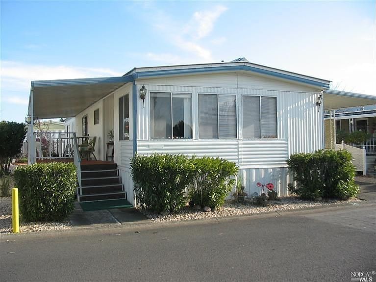 Affordable Living in Calistoga Springs 55+ Park with Views of the Mountains and Park Green. Two bedrooms, two baths, covered porch. Calistoga Springs offers a natural mineral water pool & spa open year round near downtown Calistoga.