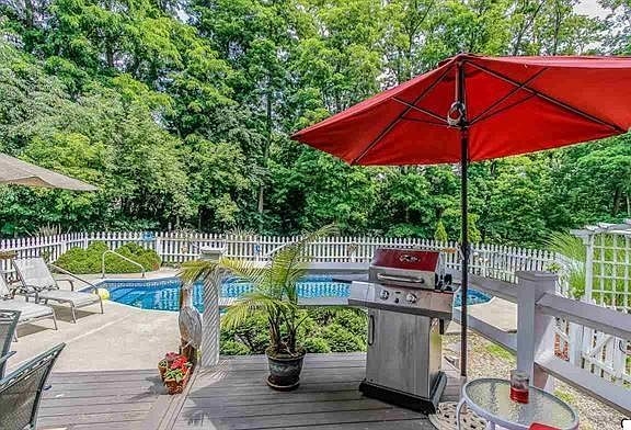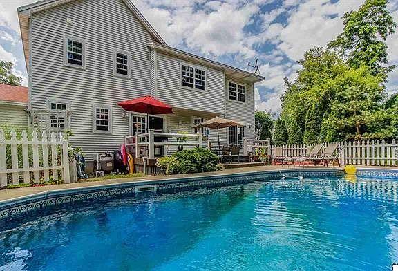 Amsterdam- Your own private retreat! Everything you could want in one package! Custom home with designer details. If you love to entertain then don't miss this outstanding property. All spacious rooms, eat-in classic white kitchen leads to private backyard oasis! Pool, garden, landscaped& private! Large master suite with own bath. Family room with fireplace & built-in. Formal dining room w/french doors & hardwoods to backyard. Bonus space in basement w/fabulous "man-cave" with custom bar...