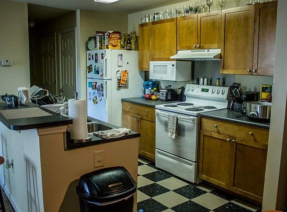 - Kitchen Cabinets/Counters: Oak Cabinets, Formica Counter
