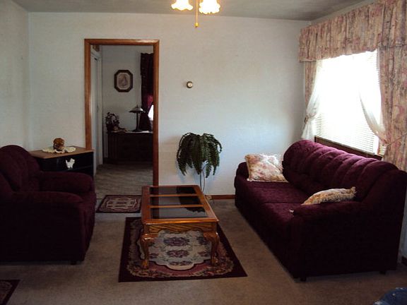 Excellent location-2 b/r 1 bath ranch-style home.This is handicapped accessible (which can be removed).CH/A- walk-in shower,plus formal dining room.13x20 enclosed sides on deck for privacy.12x20 detached storage building on concrete w/electric. 12x20 attached carport. Extra large lot- fenced on 2 sides.