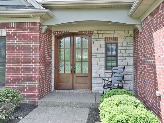 Welcome to this stunning, freshly painted, and tastefully designed walk out ranch located on a quiet cul de sac in the desirable Shakes Run neighborhood. This semi-custom built home, with an open floor plan, has spectacular amenities inside and out and is convenient to the Parklands at Floyds Fork, shopping and restaurants. The entrance is grand, with a double entry foyer, heightened ceilings, and French doors leading to the dining room (currently used as a study). You are greeted with wide-plank engineered hardwood floors that lead you into the spacious kitchen, featuring stylish cabinetry, granite countertops, stainless steel appliances, a walk in pantry, and a large island that is ideal for gathering, cooking and extra storage. Step into the family room where you will find custom built-ins, a gas fireplace with a brick hearth for seating, extra windows for natural light and a surround sound system guided by an app on your phone. Right outside the door is an alluring covered deck, adjoined by an additional larger deck, both perfect for sipping your morning coffee, reading a book or having dinner while taking in nature and the wildlife in your back yard. A pocket door separates the main living area from the hallway that leads to the primary bedroom and ensuite bath, which includes a double sink vanity, spacious shower with built in bench and his and hers walk in closets. Two additional bedrooms and a full bath complete this area. The entrance from the oversized two car garage provides convenient access to the laundry room, custom built-in mud bench with storage and a half bath. Your walk out lower level is ideal for game and movie nights with built in surround sound speakers and plenty of room for everyone. There is an additional bedroom, full bathroom, an office (currently used as a bedroom) and a huge unfinished storage area. Two sets of lower level doors provide ample natural light, as well as access to a private covered area, spectacular outdoor lighting, and a gorgeous stone fireplace with a large patio, the perfect spot to unwind while stargazing and making s'mores by the fire. New landscaping, full yard irrigation and an electric fence make your outdoor living space low maintenance and enjoyable. You have an easy walk to the neighborhood's two pools, clubhouse with fitness center, basketball court, playground and two fishing ponds. This home was built to be quiet and energy efficient with quality insulation and a dual-fuel heating system. The sellers recently updated the recessed lighting throughout, making this house move in ready. Make your appointment to see this beauty today!