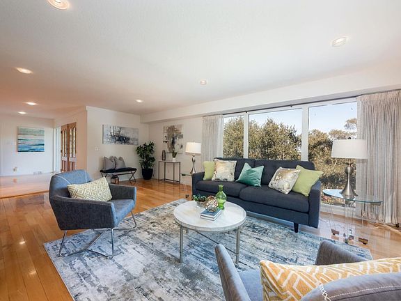 Spectacular panoramic views of the San Francisco Bay and mountains! Tastefully updated. This large and light-filled 2-story contemporary home sits atop a hill providing maximum privacy. Ample driveway with many guest parking, skylights, fresh new paints, beamed ceilings, and an updated wood deck. Move-in ready condition! Conveniently located, this home offers easy access to the 280 Freeway and the many shops and restaurants of Downtown Burlingame and Downtown San Mateo.