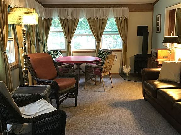 Don't miss out on this wonderful, peaceful and private acreage located on a hard surface road within 15 miles of Iowa City. Home had major additions in 2000, 2004 and 2015. Many features include a warm and spacious four season room with a gas stove, a wood burning stove in cozy den area, large loft area at top of stairs serves as third bedroom and office, whirlpool tub, master jack and jill bath, updated kitchen, outside sitting area in pergola, deck, fenced in yard, and lots of charm.