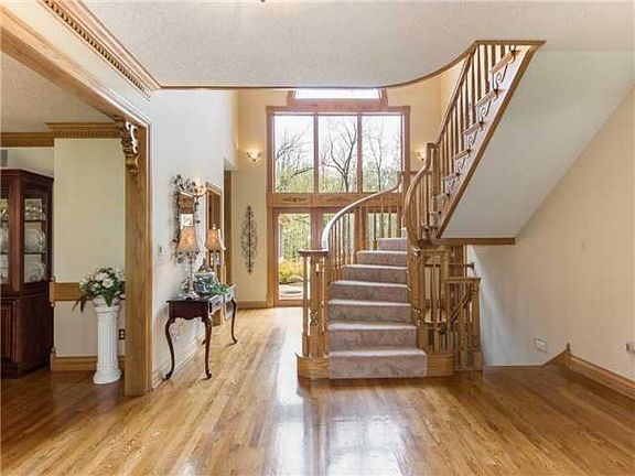 Drastic Price reduction! Secluded privacy on the 5+ acre gentleman's farm! Acreage minimum permits horses/4-H potential. Enter the lite curved drive to this tree nestled brick cape-cod styled home, greeted by a lemonade front porch. Granite, SS appl, 2 sources of heat/air, Florida Rm, full walk-out, 2-tiered deck w/ hot tub, every BR has it's own bath. 1st fl Master Suite. 2.8 acres are still treed, stocked pond, storage galore, 4th BR could be in-law suite or Nanny's. Pristine!