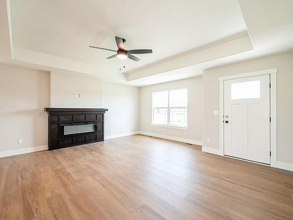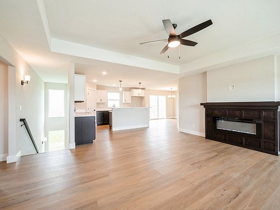 You will want to stop out and look at this new floor plan built by Jerry’s Homes. The Great Room boasts tray ceilings, adding a touch of elegance to the space. It features an electric fireplace, creating a cozy ambiance and a focal point in the room. The kitchen has an open layout, making it ideal for socializing and entertaining. It includes a breakfast bar for additional seating and functionality. The kitchen also features a walk-in pantry, providing ample storage space for food items and kitchen essentials. The kitchen’s base cabinets are stained color, while the upper cabinets are white, countertops are Quartz offering durability and a modern look. The dining area with a slider leading to the deck, providing a seamless transition between indoor and outdoor living spaces. The primary bedroom features trey ceilings, adding a touch of sophistication to the room. It also includes a walk-in closet for ample storage space. The primary bathroom is equipped with a dual vanity, topped with Quartz, providing a stylish and functional space for personal grooming. The lower level of the home offers lots of natural daylight with the additional windows; ready for you to add your personal touch in finishing off to meet your needs.