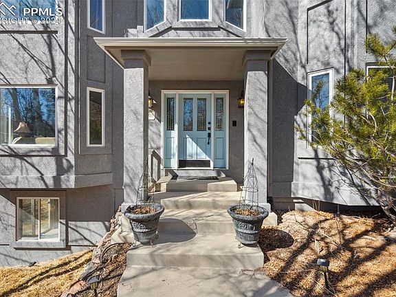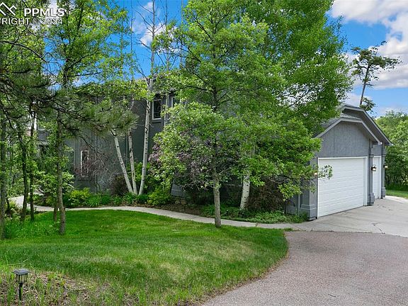 Stunning D38 stucco, walk-out, two story home nestled in the pines of Woodmoor Ridge on a private .68 acre lot. BRAND NEW CARPET INSTALLED! This sprawling 5,120 sqft home offers 5 bedrooms, a main level office, 4 baths and an oversized 3 car garage. The open floor plan showcases an inviting welcome with a covered front porch, grand staircase, formal dining room, formal living, double sided fireplace, bright and open great room, a breakfast nook that walks out to the deck and breathtaking remodeled kitchen. Special features include wood flooring throughout the main level and upgrades galore in the kitchen. Gorgeous knotty cherry Brooks Brothers cabinets, honed Brazilian marble counters, high end stainless Dacor gas stove with a gorgeous custom vent hood, Kenmore double ovens, Bosch dishwasher, and floor to ceiling storage with sliding cabinet shelves that maximize every inch! The main level office, bathroom and sizeable laundry room complete the 1st floor. Upstairs find a luxurious primary suite with fireplace, Pike Peak views, spacious walk-in closet, and 5 piece bath. 3 additional bedrooms, 2 full baths, and a large landing loft complete the upper level. The walk-out basement boasts an enourmous rec room and wet bar area as well as an Jr. suite bedroom with a full bath and dual vanity. Central Vac system, 2 furnaces, 2 hot water heaters, radon mitigation, and incredible storage! Exceptional location on a quiet street with conveniently plowed roads for easy access. Close distance to the Woodmoor Country Club that feartures a 18-hole Championship Press Maxwell designed Golf Course, 3 heated hard-indoor tennis courts, 3 heated Indoor Pickleball Courts, indoor and outdoor swimming pools, a full-service bar and grill, yoga, pilates, spin classes, Nordic SkiingMature Colorado landscaping with beauitul pines, aspens, and scrub oak. This home has a fantastic layout. Don't miss it!