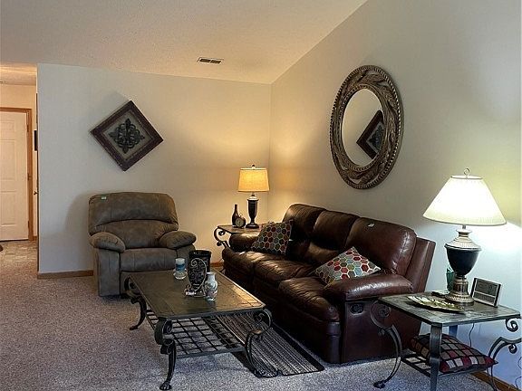 This charming condo is in excellent condition featuring one floor living with open floor plan that offers 2 Bedrooms and 2 full bathrooms. The condo boasts many upgrades to include heating and cooling system, garage door opener, refrigerator, dishwasher, privacy fence and more. The skylights provide additional daylight throughout. The primary bedroom has a walk in closet, and a full private bath. The 2nd bedroom has a large double closet. The Great Room's huge vaulted ceiling makes it a spacious room with a cozy fireplace. Plenty of cabinets in the Kitchen with a newer stainless steel refrigerator and dishwasher. The dining area has a sliding door that leads to a large deck for outdoor enjoyment. A new privacy fence has been installed. More updates include all newer flooring and front storm door. The large 2 car garage is great for storage. The first floor laundy is a very convenient feature as well.