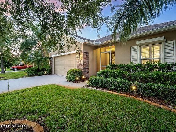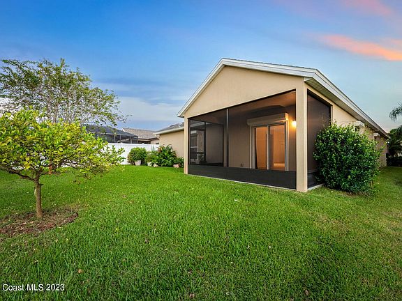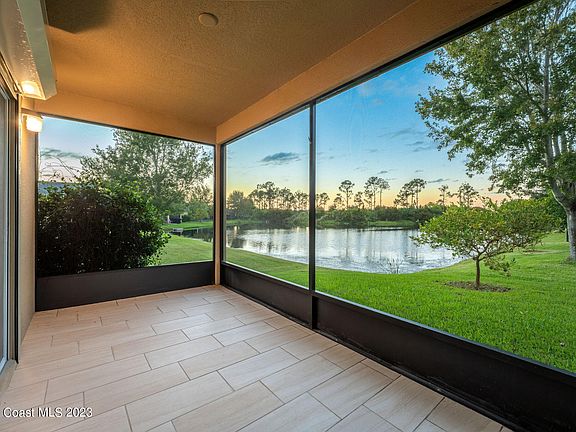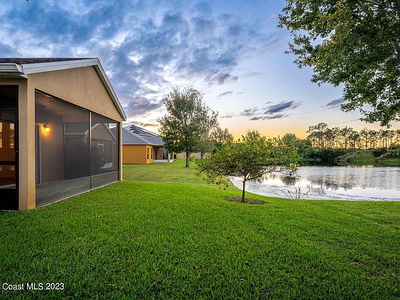 Enjoy the incredible sunset views and watch the rockets take off while overlooking the water from your screened Lanai! As you step inside this 4BD/2BA, you'll be greeted by many desirable features, such as the spacious foyer, vaulted ceilings, Tile, & vinyl/laminate flooring throughout- No Carpet! The Spacious Kitchen is a chef's delight w/ SS Appliances, Granite Countertops, tons of counter space & storage, plus a Breakfast Bar and nook. For those seeking peace of mind during Florida's stormy seasons, you'll find roll-down hurricane shutters, a valuable addition that provides security & protection. The curb appeal of this residence is nothing short of inviting, w/ exterior stone accents & established landscaping. It's a home that draws you in from the moment you arrive, promising warmth and comfort. Conveniently located in the West Melbourne neighborhood of Manchester Lakes, this is more than just a house; it's a lifestyle. With its convenient location close to shopping,dining and just minutes from the beautiful beaches, you'll have everything you need right at your doorstep!