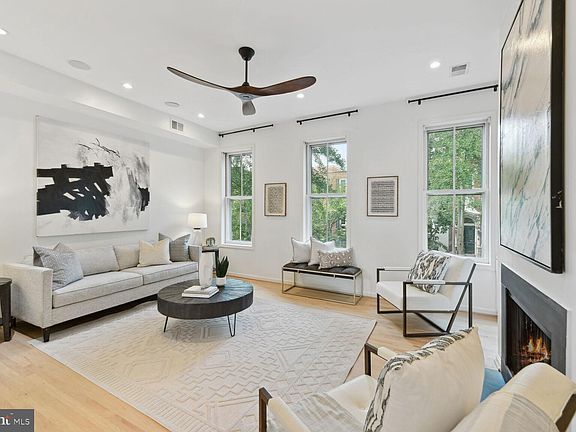 1420 Corcoran St NW effortlessly combines contemporary living with touches of historic charm. This four bedroom, three and a half bathroom Federal has two separately metered units. Quietly nestled along a tree-lined, one-way street, yet sited within feet from 14th Street’s offerings, this residence delivers beauty, convenience, and comfort both inside and outside. This thoughtfully crafted home holds a sleek and clean aesthetic throughout. The first level offers one bedroom, one full bathroom, a kitchen, and a spacious living room that opens to an enclosed patio, offering a serene escape from city life. The second level of living is light-filled and well-appointed creating an effortless flow between rooms. The living room includes a wall of windows that stream natural light, as well as a wood-burning fireplace, making the room inviting for gatherings. It has direct access to the kitchen and the dining area that opens to an outdoor deck through a set of French doors which is an ideal spot for enjoying a morning coffee or winding down after a long day. The upper level holds the primary bedroom en-suite, featuring three windows overlooking a canopy of trees, a second wood-burning fireplace, and one of two beautiful marble bathrooms. Two additional bedrooms, a bathroom and laundry complete this floor. 1420 Corcoran Street NW boasts two parking spaces with an electrical line for a car charger already installed for electric vehicles. Not surprisingly, it has an amazing walk score of 98 as it sits just steps away from 14th Street offerings like Le Diplomate, and is within easy reach of Dupont Circle, Downtown, Logan Circle and much more! **A digital fire effect has been added to the fireplaces in these photos for aesthetic purposes and does not represent their functionality.**